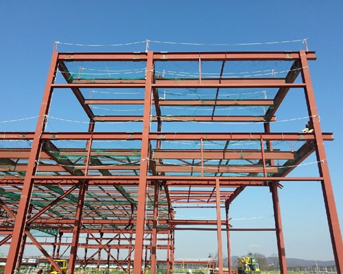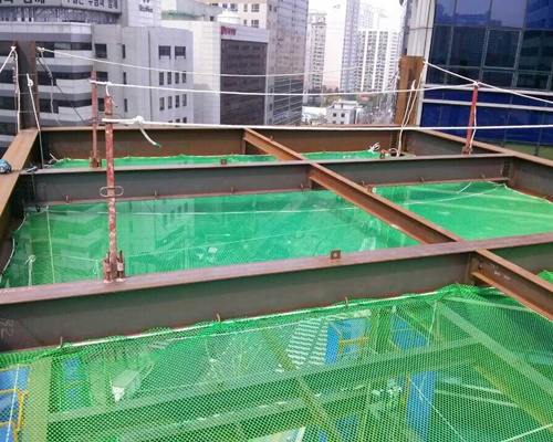 낙하물방지망은 고층 건축물 공사 시 공구나 재료 등의 낙하물에 의한 피해를 막는 목적으로 설치하는 망입니다.